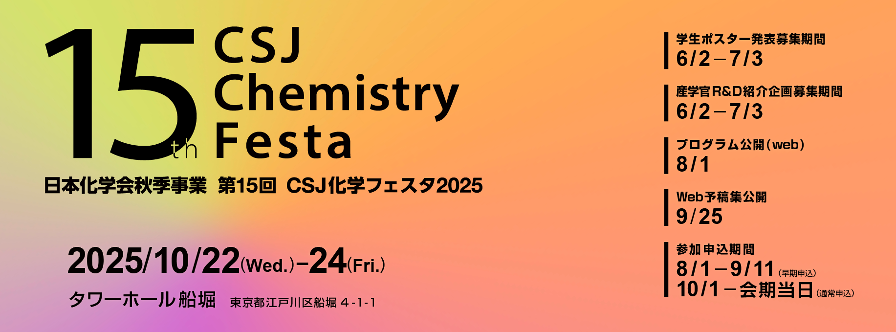 2025/10/22~10/24に東京で行われた、第15回 CSJ化学フェスタ 2025にて1件のポスター発表を行いました。